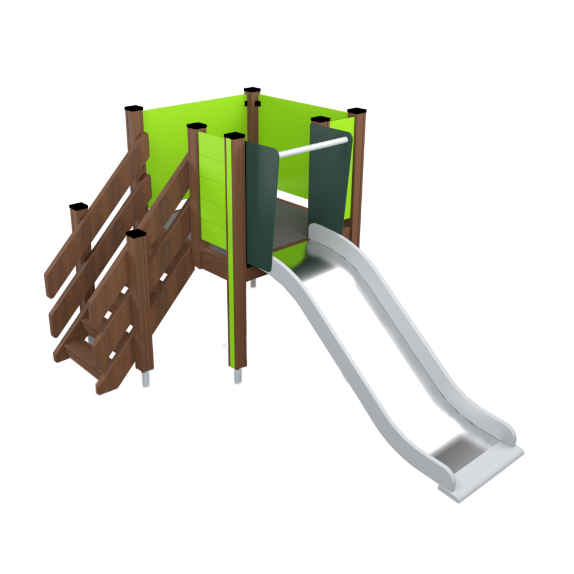 Kompakti moneen pihaan sopiva puurunkoinen liukumäki tilavalla ylätasolla. Kaiteissa otemahdollisuus eri korkeuksilla. Useita värivaihtoehtoja.