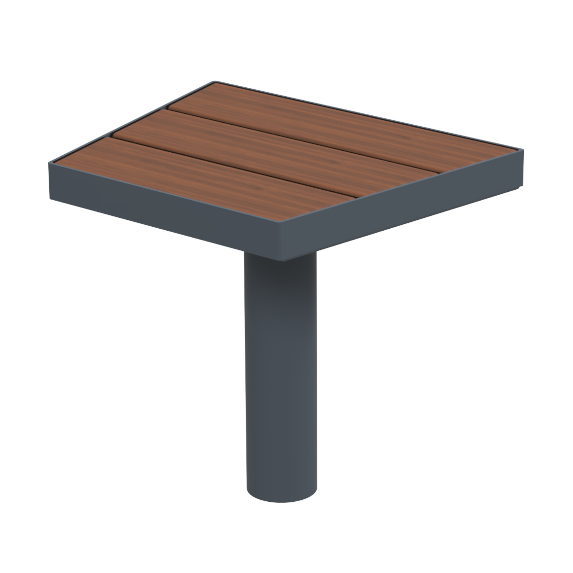 Metallirunkoinen tyylikäs puupenkki yksistään käytettäväksi tai pöydän ja muiden istumapaikkojen kanssa yhdistettäväksi.