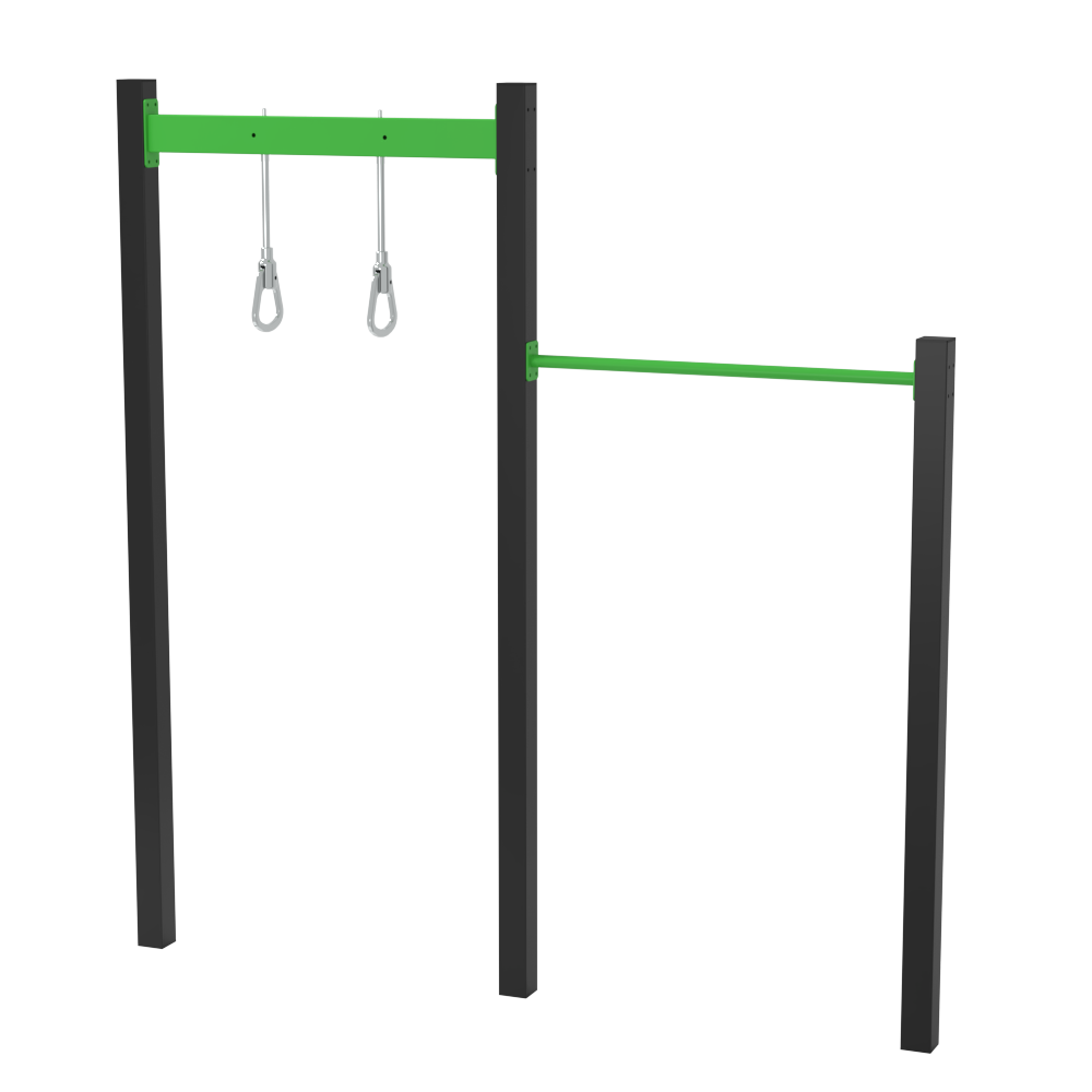 Leukapuomin ja roikkumisrenkaat sisältävä kokonaisuus. Esim. jumppakuminauhaa hyödyntämällä välineiden harjoittelumahdollisuuksia voidaan lisätä käsittämään kokonaisvaltaisesti koko keho.